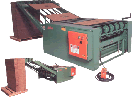 Click here to view the full brochure for this machine Fully Automatic ---Stacks the output of panel processing equipment. Versatile ---Handles a wide range of sizes and materials. Finished loads are accessible from three sides. Portable ---Can be moved by one person for use with different machines in your plant. Self-Contained ---No other equipment such as scissors lifts to buy. Labor-Saving ---Reduces handling cost, eliminates a tedious job.