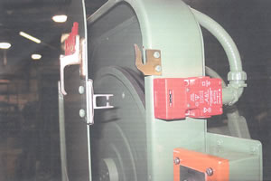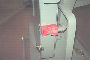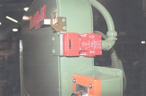 Key type interlock switches are utilized, that prevent the saw from starting when the
