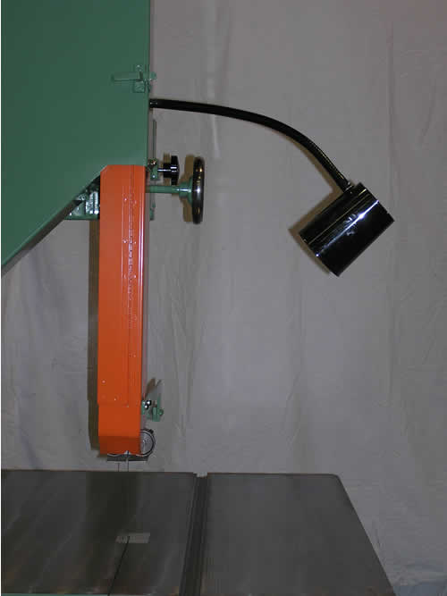 There are two styles of work lights offered. The first style plugs into a standard 110 volt duplex receptacle. The second is wired into the saws 110 volt control circuit. You also have to order the extra capacity transformer with this option.