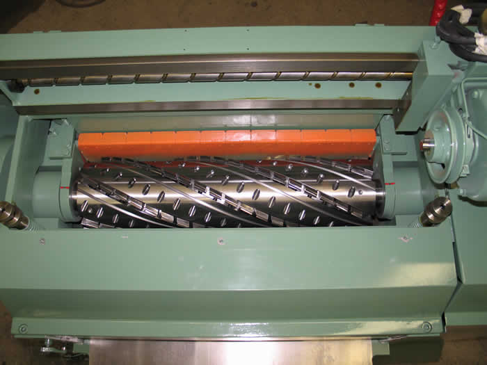 The large diameter helical carbide cutter head has a 6-1/2" cutting circle. This increase in cutting circle causes a larger scallop radius to be formed by the individual knives on the face of the work, resulting in a smoother surface finish. Both 23° and 7° cutterbit geometrics are available for this head configuration.