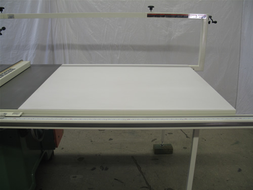 This option when used with a Biesmeyer® fence with rear rail, provides a sturdy work piece support with out having to use our cast iron extended tables. These filler tables are custom made for each application by a local custom cabinet shop and are of very high quality.