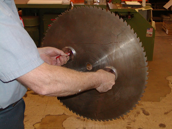 Magnetic blade lifters allow you to remove and replace blades from an updut saw arbor shaft while in the confines of the blade box. Helps minimize pinched and cut fingers commonly associated with this procedure.